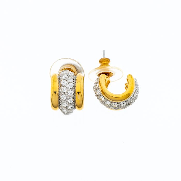 Σκουλαρικία μεταλλικά τριπλά σε χρυσό χρώμα διακοσμημένα με στράς