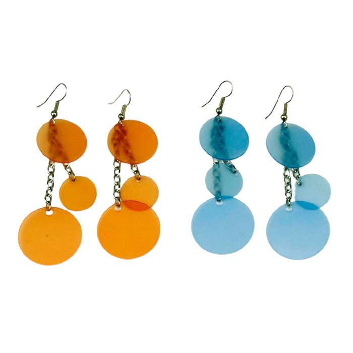 Αυτά τα σκουλαρίκια συνδυάζουν τη στιβαρή μεταλλική αλυσίδα με πολύχρωμους πλαστικούς κύκλους, δημιουργώντας ένα νεανικό, μοντέρνο αξεσουάρ που τραβάει τα βλέμματα. Η μοναδική σύνθεση υλικών εξασφαλίζει ελαφρύ βάρος και άνεση, ενώ το χρώμα δίνει ζωντάνια και ξεχωριστό στυλ σε κάθε εμφάνιση.