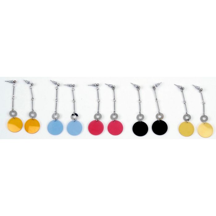 Σκουλαρίκια μεταλλική αλυσίδα με στρογγυλό κρεμαστό σε 5 χρώματα