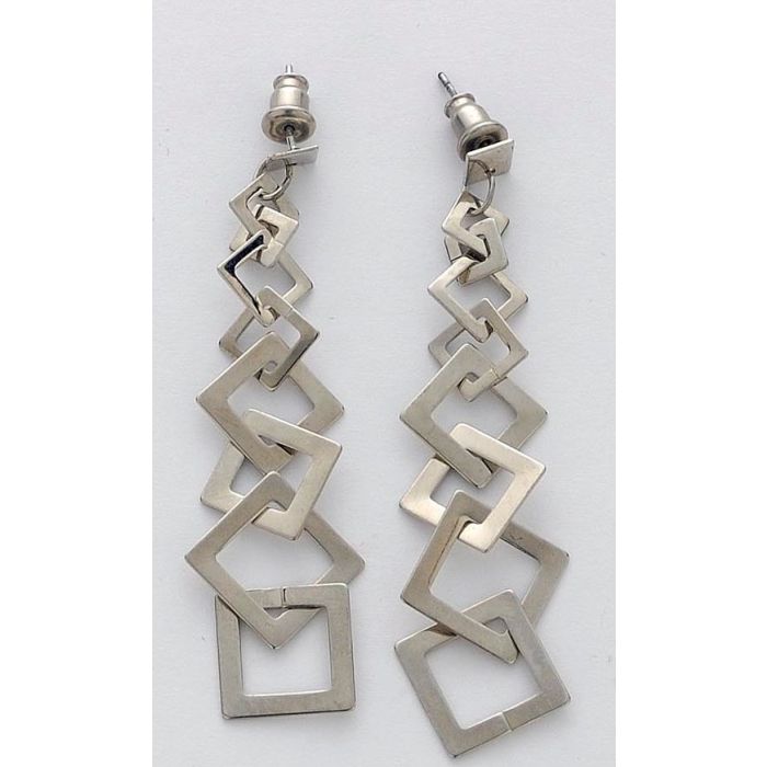 Description / Σκουλαρίκια μεταλλική ασημένια αλυσίδα από διάτρητα τετράγωνα