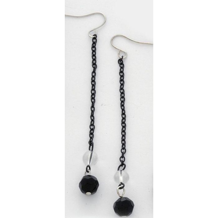 Σκουλαρίκια μεταλλική μαύρη αλυσίδα διακοσμημένη με 2 χάντρες