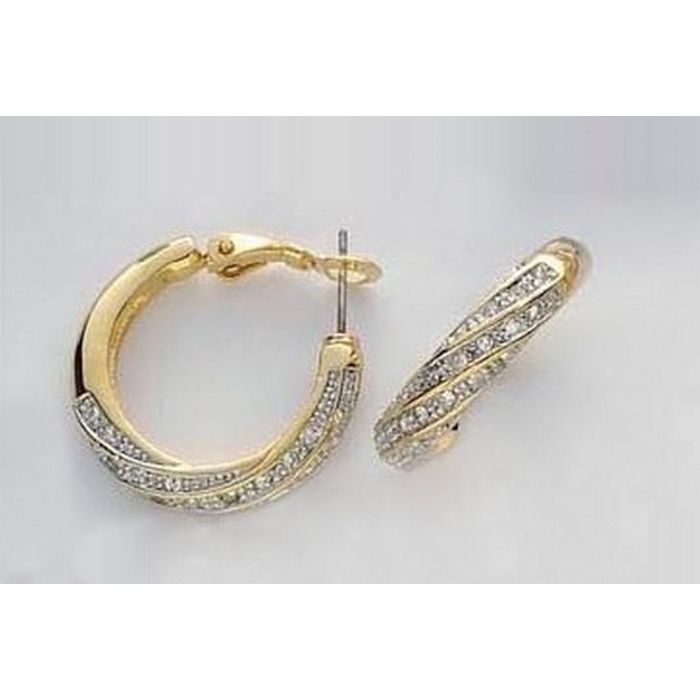Σκουλαρίκια μεταλλικοί κρίκοι διακοσμημένοι με διαγώνιες γραμμές από στράς