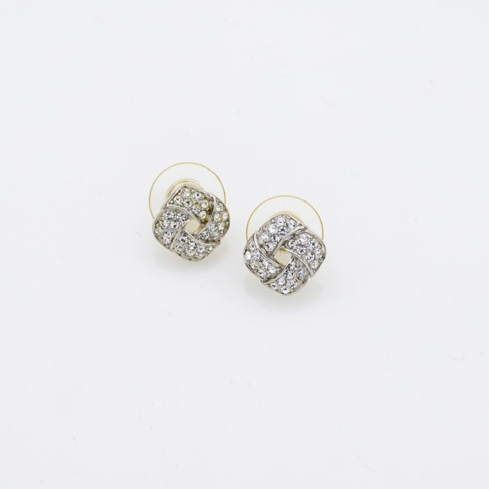 Description / Σκουλαρίκια μικρά ασημί με λευκά στράς