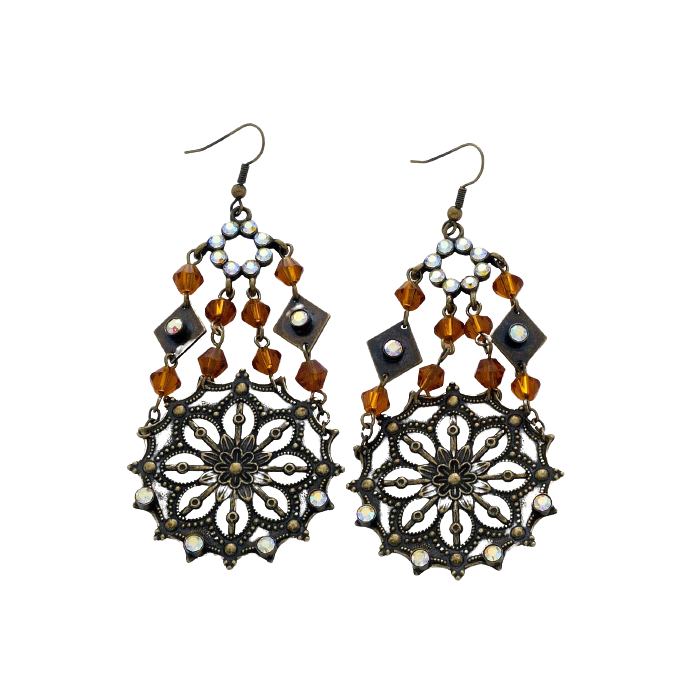 Description / Σκουλαρίκια μπρούτζινη ροζέτα διακοσμημένη με στράς