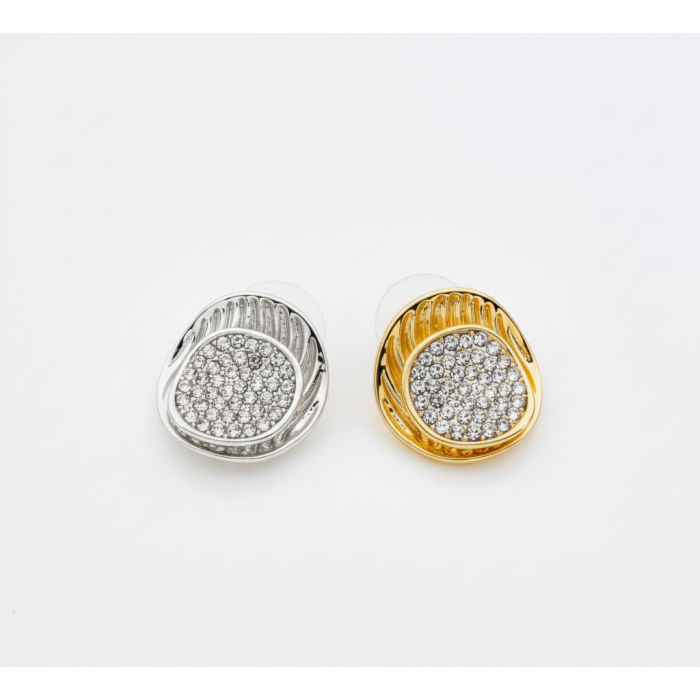 Description / Σκουλαρίκια οβάλ με ανάγλυφη υφή και στρας