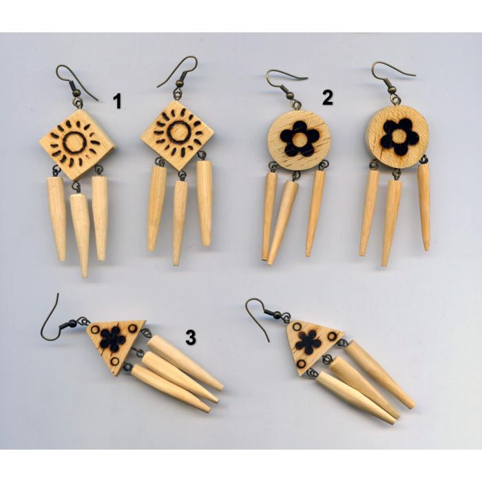 Σκουλαρίκια ξύλινα σε 3 σχέδια με την τεχνική εγκαυστικής