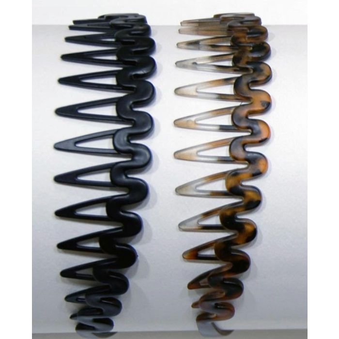 Description / Στέκα πλαστική χτένι ζικ ζάκ σε καφέ και μαύρο χρώμα