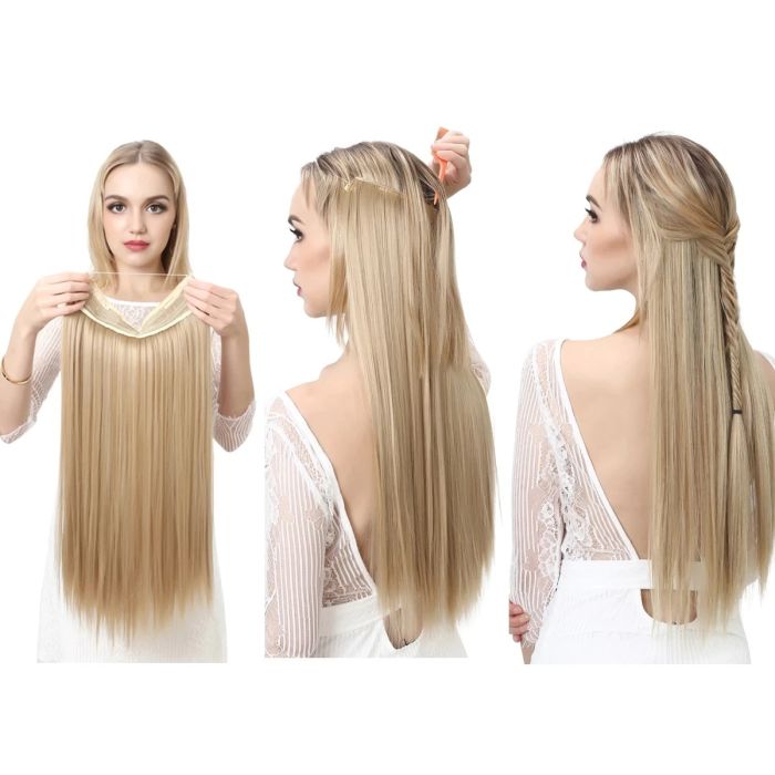Η πιο επαναστατική, γρήγορη και αόρατη μέθοδος για να αποκτήσετε τα μακριά, πλούσια μαλλιά που πάντα ονειρευόσασταν. Αυτή η τρέσα δεν χρησιμοποιεί κλιπ, κόλλα ή ταινία. Στηρίζεται απαλά στο κεφάλι σας με μια εντελώς αόρατη πετονιά (mis-wire), επιτρέποντάς σας να τη φορέσετε και να τη βγάλετε σε λιγότερο από ένα λεπτό. Η απόλυτη μεταμόρφωση, χωρίς καμία απολύτως φθορά στα δικά σας μαλλιά.